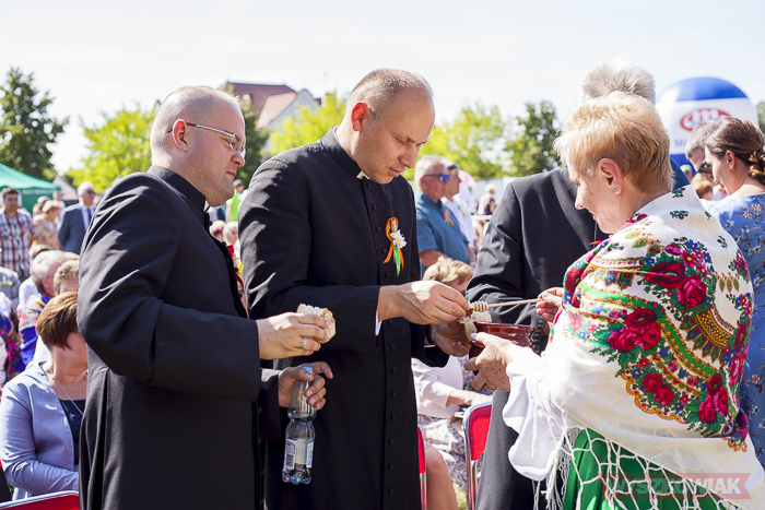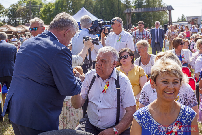 Paweł Kulesza na ręce włodarzy przekazał miód. Starosta, wójtowie gmin powiatu wyszkowskiego, starostowie dożynkowi podzielili się chlebem z gośćmi uroczystości, wśród których byli nie tylko przedstawiciele samorządów, mieszkańcy, sołtysi, ale też reprezentanci instytucji, organizacji, firm.