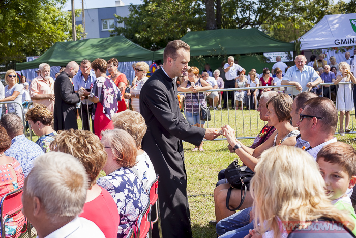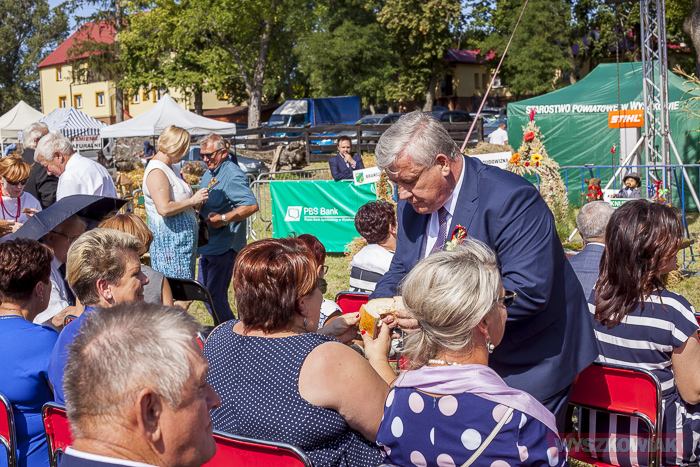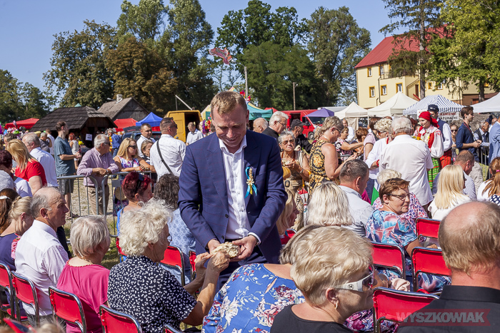 - Dożynkowe święto to w polskiej tradycji czas radości i podziękowań - Panu Bogu za plony, a ludziom za trud. To też czas refleksji nad tym, jak ważna jest ludzka solidarność i współdziałanie, aby było z czego dożynkowy chleb upiec i sprawiedliwie podzielić. Dożynki są przypomnieniem o godności pracy człowieka powiązanej z miłością ojczystej ziemi - podkreślił wójt Wiesław Przybylski. - Dziś wspólnie wyrażamy wdzięczność za dar ziemi i chleba, za pochylenie się niebios nad ziemią, alby wydała obfity plon. Chleb jest podstawą naszej egzystencji, symbolem i znakiem wyższych wartości. Człowiek potrzebuje chleba, którym trzeba się dzielić z innymi, a szczególnie tymi, którzy żyją w niedostatku.
