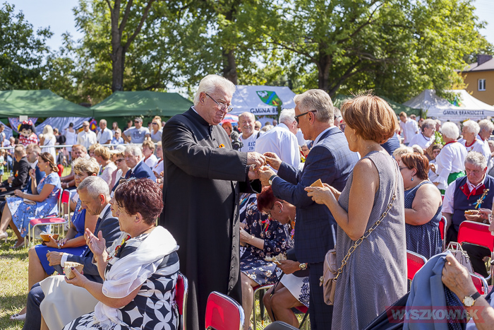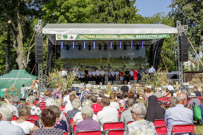 (Zam: 26.08.2019 r., godz. 12.24)Funkcję starostów dożynkowych pełnili Wojciech i Renata Kukwowie, starosty bartnego - Paweł Kulesza z Brańszczyka. Wieńce do dożynkowe prezentowało kilkanaście delegacji. Wydarzenie odbywając się na terenie skansenu w Brańszczyku poprowadzili przedstawiciele Gminnego Domu Kultury dyrektor Krzysztof Bereda i Monika Andrzejewska. Jego organizatorem było Starostwo Powiatowe, gmina Brańszczyk, parafia Brańszczyk.