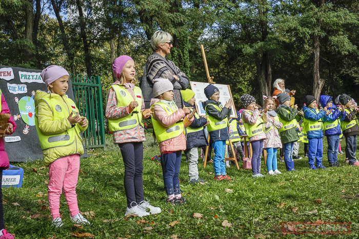 (Zam: 20.09.2019 r., godz. 13.31)Dzieci spotkały się w miejskim parku. Pierwsza część akcji miała formę zajęć, w ramach których w konwencji zabawy dzieci zapoznały się m.in. z zagadnieniami dotyczącymi segregacji śmieci. Chętnie odpowiadały na pytania prowadzących, a na koniec złożyły przyrzeczenie, w którym zobowiązały się do dbania o środowisko. Miejska biblioteka cyklicznie organizuje tego typu zajęcia kształtując w najmłodszych mieszkańcach niezwykle ważne postawy troski o wspólną przestrzeń. Dzieci wyposażone w worki i rękawiczki brały też udział w sprzątaniu parku.