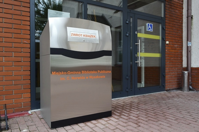 Urządzenie znajduje się przed wejściem do budynku. „Jest to całodobowa komora wrzutowa, do której możesz oddać wypożyczone pozycje. Zwroty rejestrowane będą następnego dnia roboczego.” - informuje biblioteka.