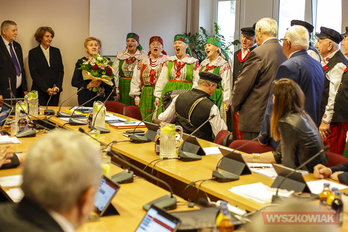 Do sali obrad zaprosiła też Zespół Pieśni i Tańca „Oberek” wraz z prowadzącymi grupę Danutą Deptułą i Stanisławem Kadłubowskim.