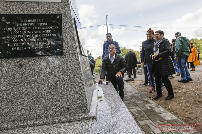 - 5 października 1939 r. Niemcy niezwykle brutalnie wygnali żydowskich mieszkańców Długosiodła do sowieckiej strefy okupacyjnej - podkreślił. - Losy wygnańców ułożyły się dwojako - jednym pozwolono pozostać w sowieckiej strefie i ci zostali tam wymordowani w 1941 r. po wkroczeniu Niemców. Drugich jako polskich Żydów, czyli element politycznie niepewny, przesiedlono w głąb Związku Sowieckiego na Syberię i w inne miejsca odosobnienia. Paradoksalnie ta etykietka postpolskości uratowała im życie - niektórzy z nich przeżyli i to właśnie ich lub ich dzieci i wnuki dziś tu witamy - dodał. - Żydów z okolicznych wsi w 1940, 1941 r. spotkał inny los. Wygnano ich do getta w Makowie Mazowieckim, skąd trafili do obozu zagłady w Auschwitz, Treblince lub w głębi Niemiec. Przeżyli nieliczni - stwierdził. - Czemu dopiero dziś pochylamy się nad losem połowy społeczności naszej gminy? Powodów jest kilka. Wypędzenie ludności żydowskiej za kordon sowiecki było pierwszą w Polsce tego typu operacją niemieckich okupantów i bardzo szybko jej pamięć przesłoniło pięć lat straszliwych represji m.in. masowe egzekucje Polaków w Długosiodle, Małaszku i największa masakra wsi w Polsce w Lipniaku Majoracie. O wygnaniu z Długosiodła nie było komu przypominać, bo nikt z wypędzonych nie powrócił. Nie wiedziano o nich nic. Przymusowa zmiana ustroju po 1944 r. też nie sprzyjała szerzeniu wiedzy historycznej. Poszukiwane śladów przeszłości stało się możliwe właściwie dopiero w dobie internetu,. W ten sposób po raz pierwszy natknąłem się na wzmianki o Długosiodle w dokumentach z Yad Vashem, co zainspirowało mnie do poszukiwań w archiwach urzędu stanu cywilnego i starych dziennikach szkolnych. Upamiętnienie miejscowych współobywateli, Żydów jest niejako ostatnią klamrą zamykającą naszą wiedzę o zbrodniach okupanta.