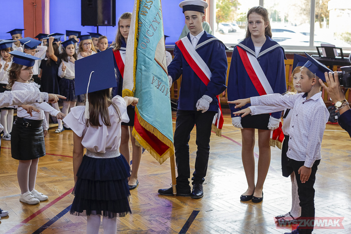 (Zam: 16.10.2019 r., godz. 14.52)Pierwszoklasistom w tym ważnym dla nich momencie towarzyszyli licznie zgromadzeni rodzice, a także wychowawcy, przedstawiciele Rady Rodziców, samorządu uczniowskiego. Wśród gości byli też radni Eugeniusz Zaremba i Grzegorz Wyszyński oraz przedstawicielka Krajowego Stowarzyszenia Pomocy Szkole Zofia Dawidzka.