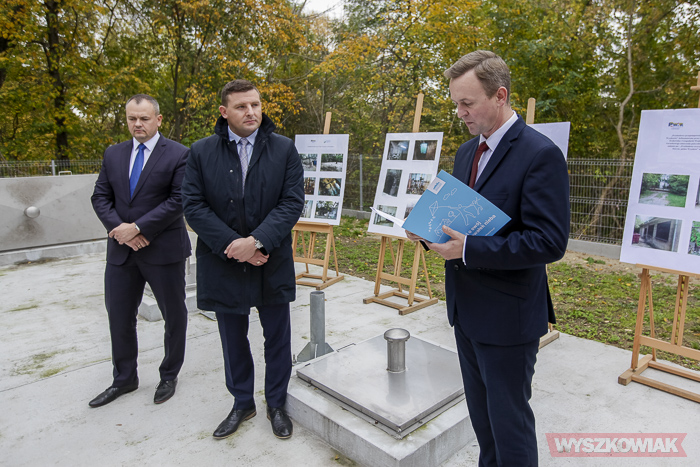 Burmistrz Grzegorz Nowosielski dziękował Wojewódzkiemu Funduszowi Ochrony Środowiska za wsparcie PWiK, wieloletnią dobrą współpracę w wielu działaniach na rzecz ochrony powietrza, budowy kanalizacji, propagowania ekologicznego stylu życia. WFOŚ przekazał na przebudowę przepompowni wsparcie wynoszące 462 593 zł.