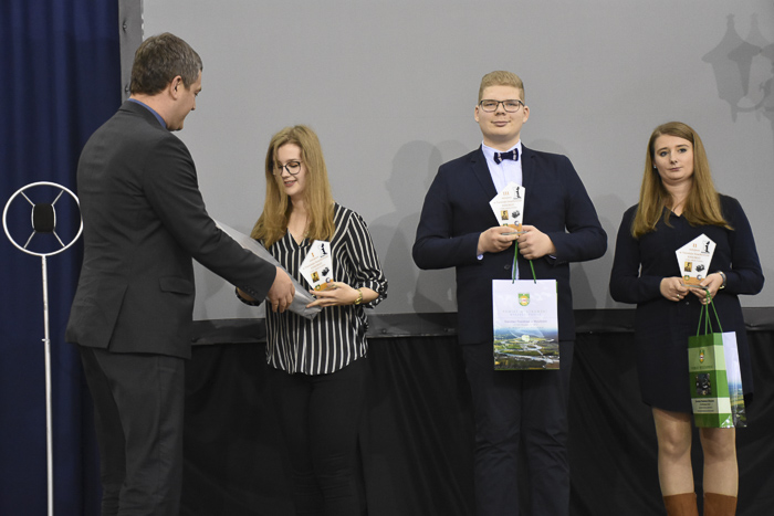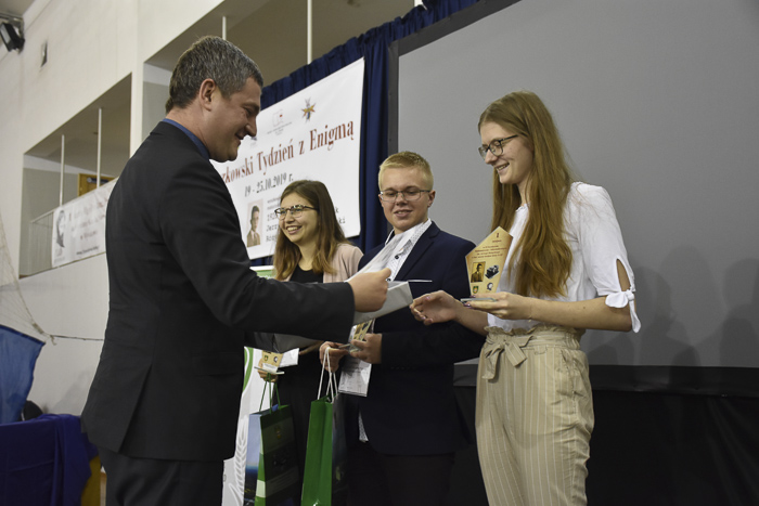 Spotkanie w I LO było okazją do wręczenia nagród i wyróżnień laureatom konkursów zorganizowanych w ramach Tygodnia z Enigmą. Młodzieży gratulował wicestarosta Leszek Marszał.