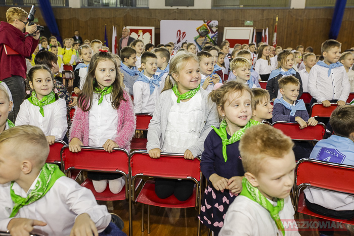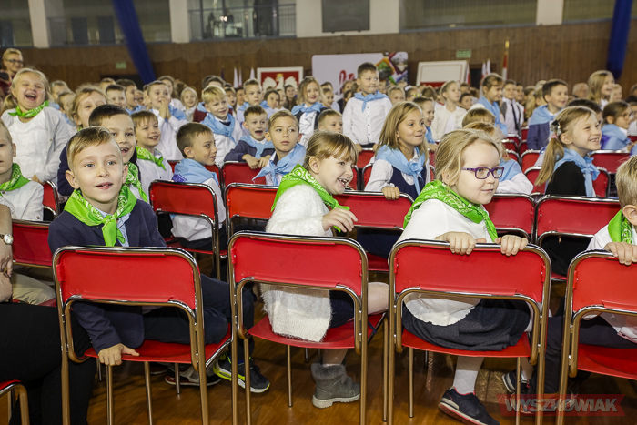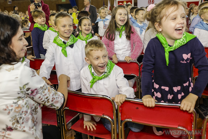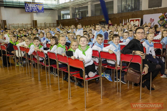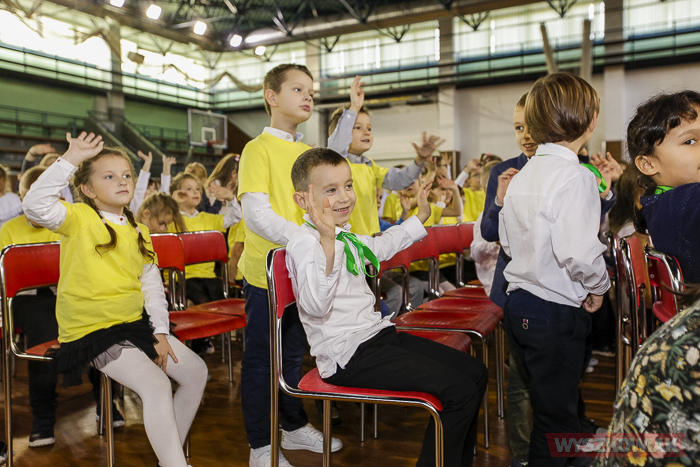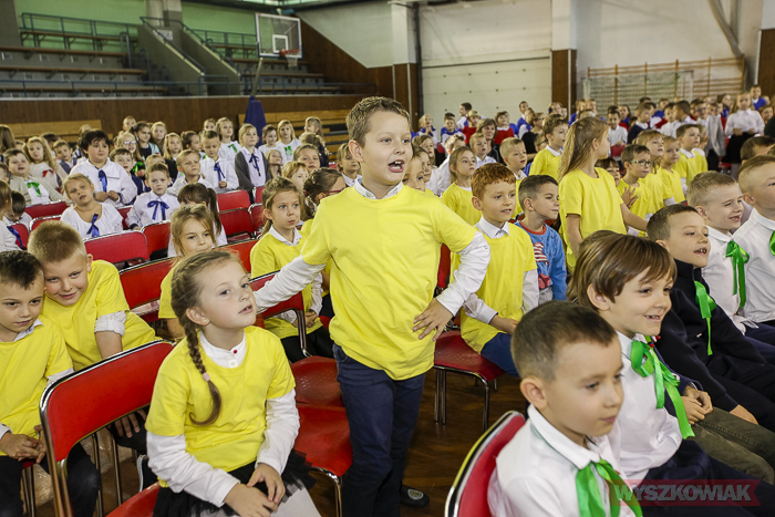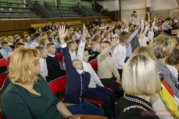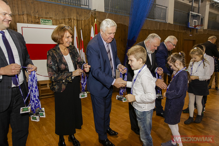 - Kiedy są u mnie w urzędzie dzieci, lubią przymierzać ten łańcuch i siadać w fotelu burmistrza - wspomniał. - Wyszków to samorządowa, oświatowa rodzina. Prawie pół tysiąca dzieci spotkało się tu - dobrze byście się poznali, polubili i poczuli dobrze, jak w rodzinie.