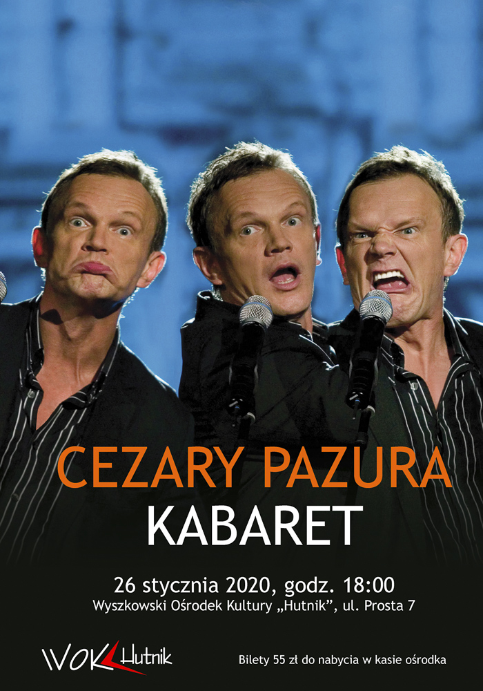 Cezary Pazura jest też twórcą autorskiego kabaretu. Do wspólnej zabawy w tej odsłonie swojej twórczości zaprasza wyszkowian 26 stycznia. Jego skecze kabaretowe bawią publiczność do łez wywołując burzę śmiechu i oklasków. Warto się przekonać, czym tym razem artysta zaskoczy publiczność.