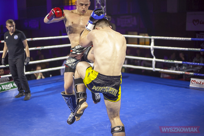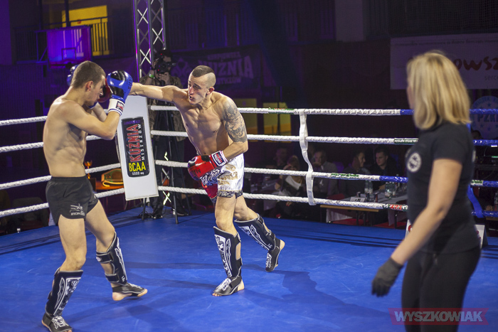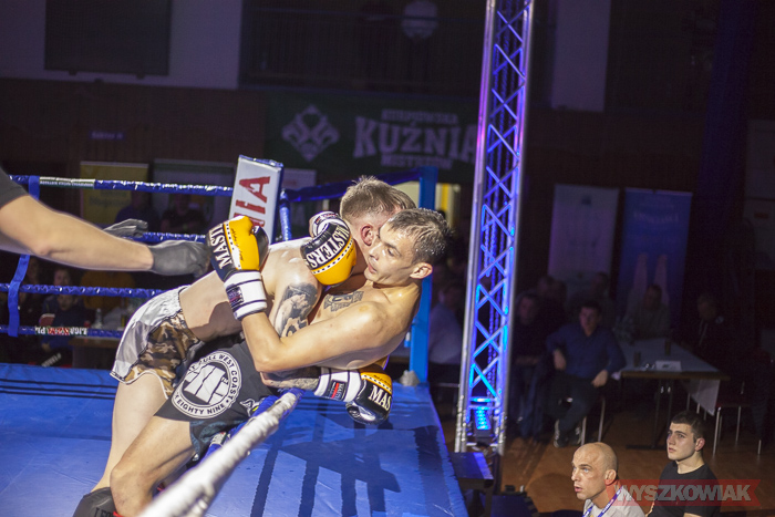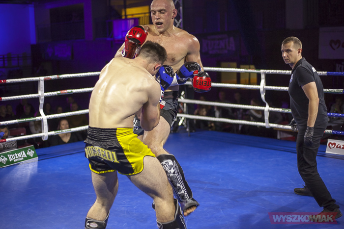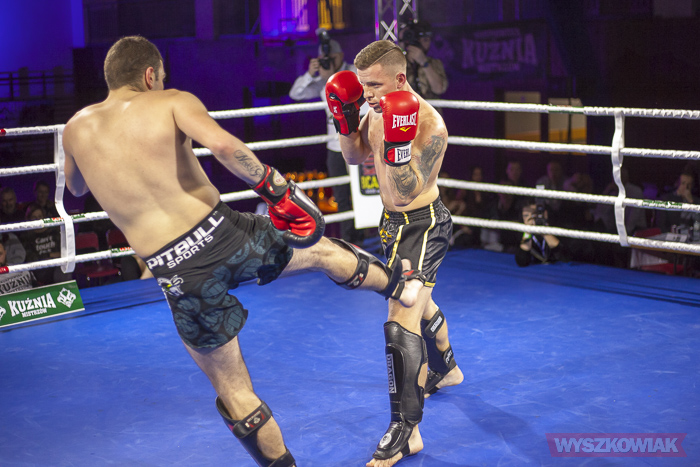 W końcu przyszedł czas na trzy walki wieczoru, w stawkach których znalazły się pasy mistrzowskie Kurpiowskiej Kuźni Mistrzów. W pierwszej z nich, do drugiej obrony pasa w kategorii do 91 kg stanął Karol Łasiewicki (Fight Academy Ostrołęka). Naprzeciw niego stanął Kamil Laskowski z Palestry Warszawa. Pojedynek zakończył się zwycięstwem Łasiewickiego, który tym samym zatrzymał pas. W drugiej walce wieczoru Marcel Gielezy (Iron Gym Wrocław) zmierzył się z Danielem Strzemińskim (Akademia Lwa Warszawa). Walka odbywająca się w kategorii do 75 kg zakończyła się już w pierwszej rundzie efektownym zwycięstwem Gielezego, który znokautował rywala tzw. backfistem (obrotowym uderzeniem grzbietem pięści). Nokautem zakończyła się również ostatnia walka wieczoru, w której faworyt wyszkowian, Daniel Bralewski, zmierzył się o pas kategorii do 86 kg z Jackiem Gać (Uniq Warszawa). Niestety, pojedynek nie przebiegł po myśli Bralewskiego. Jego rywal od pierwszego gongu ponawiał ataki bokserskie na korpus Daniela. Jeden z ciosów „siadł” na wątrobę, co kosztowało Bralewskiego przegraną przez nokaut.