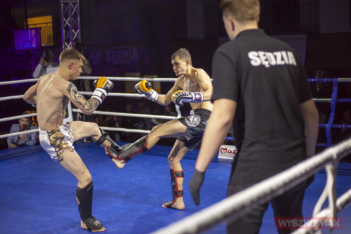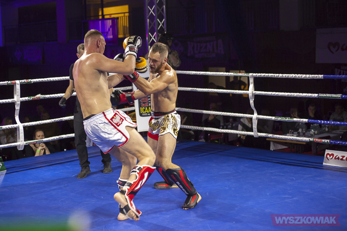 Gala główna rozpoczęła się o godz. 19.00. Zaplanowano na nią dziesięć starć, w tym trzy walki wieczoru toczone o pasy mistrzowskie Kurpiowskiej Kuźni Mistrzów. Pierwsi w ringu zameldowali się bokserzy (waga do 91 kg): Grzegorz Bołtromiejuk (Gimnazjon Kuźnia Wyszków) i Dawid Krajewski (Akademia Lwa Warszawa). Zwycięstwo odniósł faworyt gospodarzy, wprawiając miejscowych kibiców w dobry nastrój. W następnej walce na ringu zameldowały się kobiety. W formule K1, w wadze do 54 kg, pojedynek stoczyły Julia Sochacka (CatFit Serock) i Ewelina Peczyńska (Fight Academy Ostrołęka). Walka była bardzo dynamiczna i zakończyła się w drugiej rundzie zwycięstwem Peczyńskiej przed czasem. Swój pojedynek z Dawidem Kwiatkowskim (Academia Gorila Żyrardów) skończył również przed czasem (w trzeciej rundzie) Michał Kempisty z wyszkowskiego Gimnazjonu (K1, kategoria do 81 kg). Dynamiczną walkę w boksie (kategoria do 75 kg) dali kibicom Adam Łopiałło (Łuczek Boks Giżycko) i Rafał Majewski (Żoliborska Szkoła Boksu). Przez TKO w drugiej rundzie wygrał Łopiałło, tym samym udanie rewanżując się rywalowi za poprzedni pojedynek stoczony również w Wyszkowie, w październiku 2018 r. (wtedy wygrał na punkty Majewski). Kolejne pojedynki toczone były już tylko w formule K1. Zwycięstwo w kategorii do 65 kg odniósł Marcin Majewski, który pokonał Szymona Szymorajczyka z klubu Academia Gorila Żyrardów. Reprezentant stołecznego klubu Palestra Warszawa Krzysztof Pyrka pokonał natomiast Mateusza Siedleckiego (Knockout Warszawa). Po nich w ringu pojawił się reprezentant wyszkowskiego Gimnazjonu Marcin Rojek, który zmierzył się z Łukaszem Kaczmarkiem z Ostrowi Mazowieckiej. Po ringowej wojnie, ku uciesze miejscowej publiczności na punkty wygrał Rojek.