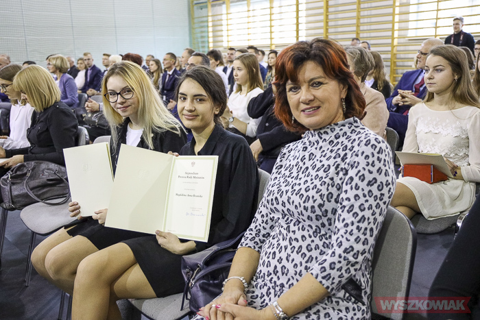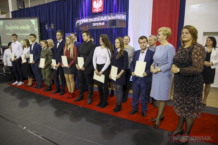 (Zam: 11.12.2019 r., godz. 08.37)W sali gimnastycznej placówki spotkali się przedstawiciele szkół funkcjonujących na terenie podlegającym ostrołęckiej delegaturze Kuratorium Oświaty. Wśród gości uroczystości byli m.in. I mazowiecki wicekurator oświaty Dorota Skrzypek, kierownik delegatury Urzędu Wojewódzkiego w Siedlcach Anna Kaszuba, przedstawiciele samorządów, dyrektorzy szkół. Stypendia odebrało 42 uczniów. Z powiatu wyszkowskiego byli to: Wiktoria Łaszczewska z I Liceum Ogólnokształcącego w Wyszkowie, Patrycja Torbińska z II Liceum Ogólnokształcącego w Zespole Szkół nr 1 w Wyszkowie, Magdalena Branicka z Technikum nr 1 w Zespole Szkół nr 1 w Wyszkowie, Aleksandra Ciemerych z Technikum nr 2 w Centrum Edukacji Zawodowej i Ustawicznej „Kopernik” w Wyszkowie, Dominika Wójcik z Technikum w Zespole Szkół nr 3 w Wyszkowie, Aleksandra Zawadzka z Liceum Ogólnokształcącego w Zespole Szkół nr 3 w Wyszkowie, Jolanta Płochocka z IV Liceum w Zakładzie Doskonalenia Zawodowego w Warszawie, Centrum Kształcenia w Wyszkowie.