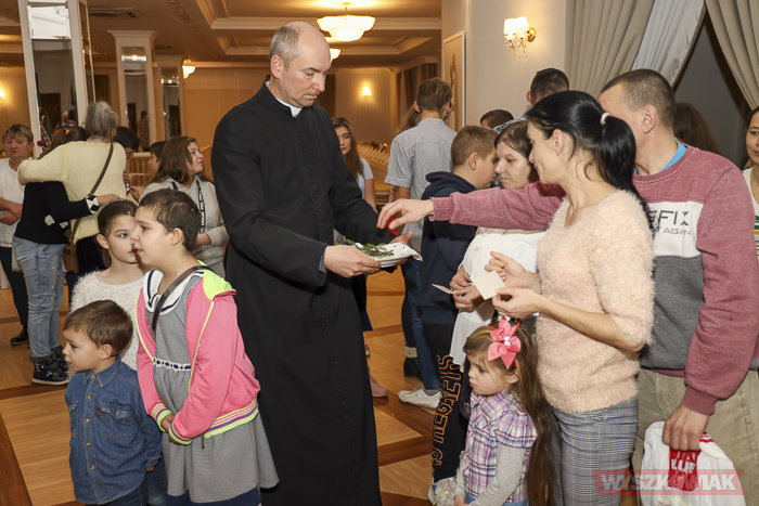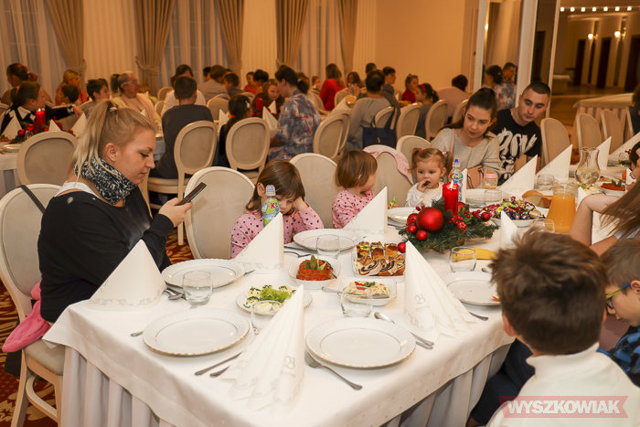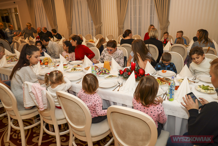 Uczestnicy po złożeniu sobie życzeń zasiedli do uroczystej kolacji. Otrzymali świąteczne paczki. Przygotowali je pracownicy OPS dzięki sponsorom - firmie Pomelac i Przedsiębiorstwu Wodociągów i Kanalizacji. Żywność zbierali wolontariusze z Centrum Edukacji Zawodowej i Ustawicznej „Kopernik” w ramach akcji, którą zorganizował Klub Przyjaciół Wyszkowa wraz z Ośrodkiem Pomocy Społecznej.