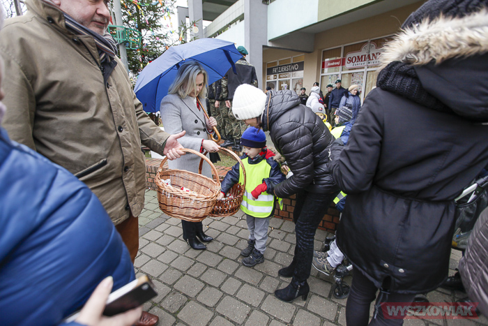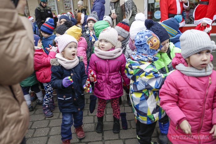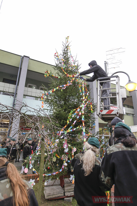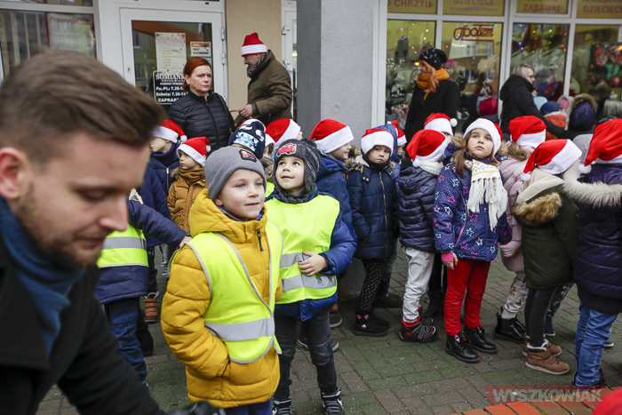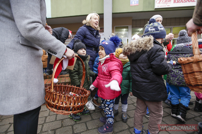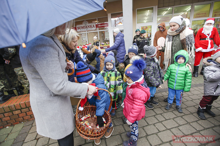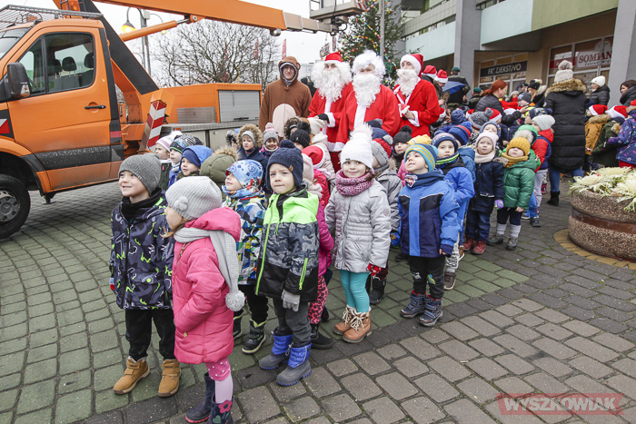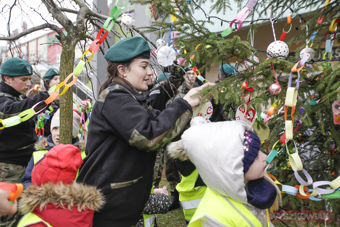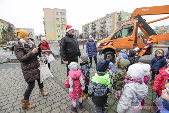 (Zam: 13.12.2019 r., godz. 11.42)Drzewko na placu przy fontannie przy ul. Sowińskiego stało się kolorowe dzięki przedszkolakom, które własnoręcznie przygotowały ozdoby - papierowe łańcuchy, wycinanki i in. W dekorowaniu choinki pomagał dzieciom prezes Klubu Adam Mróz wraz z innymi członkami stowarzyszenia. Wsparciem służyli także wolontariusze - uczniowie Centrum Edukacji Zawodowej i Ustawicznej „Kopernik” wraz z opiekunem Danutą Przybysz. Wśród uczestników akcji była też zastępca burmistrza Aneta Kowalewska, która włączyła się w rozdawanie dzieciom upominków. Maluchy wraz z opiekunami jak co roku nie zawiodły odpowiadając na zaproszenie Klubu. Na pamiątkę mogły sobie zrobić zdjęcie z Mikołajem.