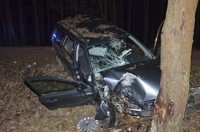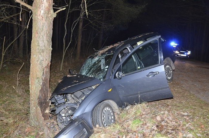 (Zam: 02.01.2020 r., godz. 10.01)Do wypadku doszło w sobotę 28 grudnia około godz. 19.00 na odcinku drogi prowadzącej z Długosiodła do Wólki Piasecznej. Policjanci pracujący na miejscu zdarzenia wstępnie ustalili, że kierujący fordem zjechał z drogi do rowu, a następnie uderzył w drzewo. Badanie na zawartość alkoholu wykazało w organizmie 61-latka ponad promil. Do szpitala z obrażeniami ciała przetransportowano kierującego i pasażera.