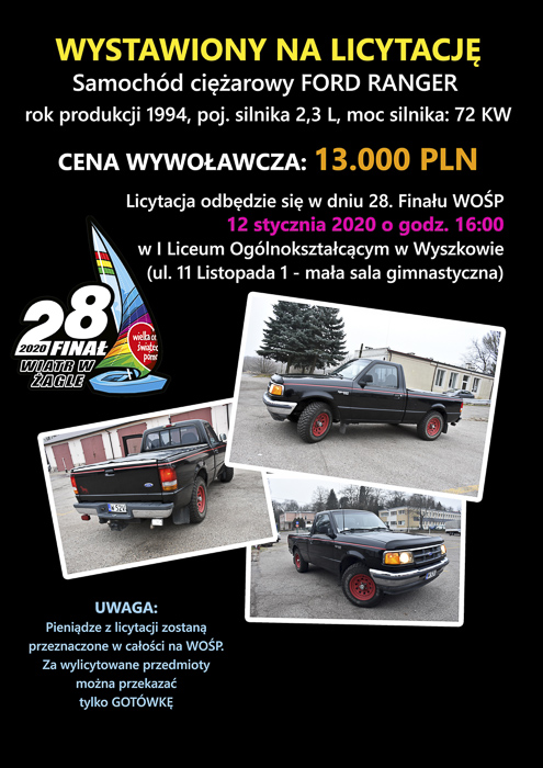 Aukcja, która odbędzie się w niedzielę 12 stycznia w I Liceum Ogólnokształcącym im. C. K. Norwida w Wyszkowie, jest jedną z wielu atrakcji przygotowanych przez wyszkowski sztab WOŚP. W ramach dwudniowego programu przygotowano m.in. turniej piłki siatkowej, pokazy taneczne, morsowanie, bieg na 3 km, koncert zespołów rockowych, występ gwiazdy - Mezo.