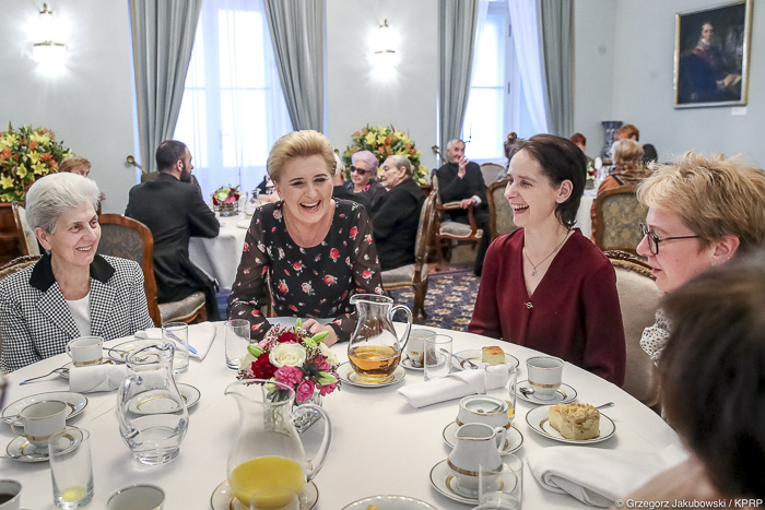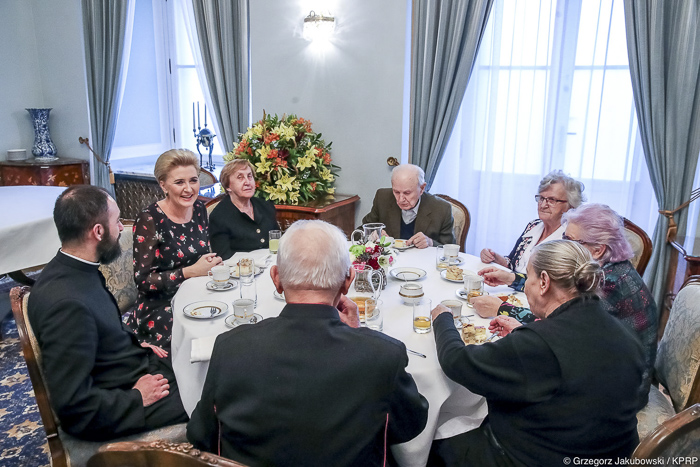 Małżonka prezydenta podkreślała wyjątkową rolę seniorów w naszym społeczeństwie, ich dorobek i wartość międzypokoleniowej wymiany wiedzy. Pytana przez swoich gości o własną aktywność mówiła o zaangażowaniu w działalność charytatywną, o promocji czytelnictwa, wizytach w domach opieki i ośrodkach szkolno-wychowawczych. Wspominała różne spotkania z seniorami i wyraziła opinię, że wszelkie inicjatywy mające na celu aktywizację osób starszych są istotne i potrzebne zarówno samym seniorom, jak i społeczeństwu. Goście Pierwszej Damy podzieli się z nią wrażeniami ze zwiedzania Pałacu Prezydenckiego, przy okazji rozmowy poznali kulisy wizyt głów innych państw w Polsce, przebieg ceremonii oficjalnych i historie związane z codziennym życiem Pary Prezydenckiej.