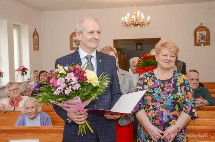 - Gratuluję tak pięknej rocznicy, godne pozazdroszczenia jest pani zdrowie, pogoda ducha, radość - stwierdził wójt Wiesław Przybylski. - Życzymy zdrowia, pomyślności, szczęścia, nieustającej pogody ducha, niech każdy kolejny dzień przynosi uśmiech, radość z chwil spędzonych w gronie życzliwych osób. Myślę, że to miejsce sprzyja takiemu pogodnemu nastawieniu.
