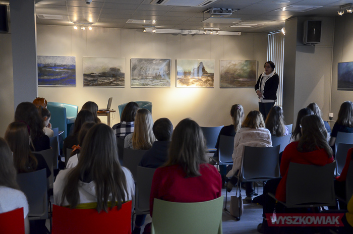 Iwona Wyszatycka mówiła o technikach, z których korzysta tworząc swoje obrazy czy batiki. W drugiej części spotkania opowiedziała zaś o secesji - jej początkach, źródłach inspiracji, wpływie na kulturę.