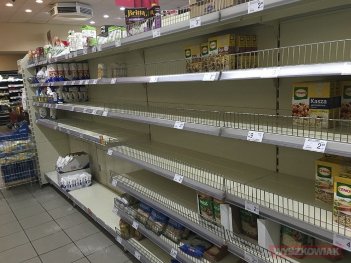 (Zam: 13.03.2020 r., godz. 08.44)Tak jak w całym kraju, także i na naszym terenie z półek znikały przede wszystkim makarony, mąka, kasze, mydło, papier toaletowy, a także chleb, konserwy. Długie kolejki, pośpiech, nerwy, zapchane parkingi - tak wyglądała rzeczywistość w ostatnich dniach przed centrami handlowymi. Ministerstwo Rozwoju zapewnia, że „Nie jest rozważane wprowadzenie nakazu dotyczącego zamykania obiektów handlowych. Zarówno pracownicy sklepów, jak i klienci, są proszeni o przestrzeganie wytycznych dotyczących zasad higieny, o których informuje Główny Inspektorat Sanitarny.".