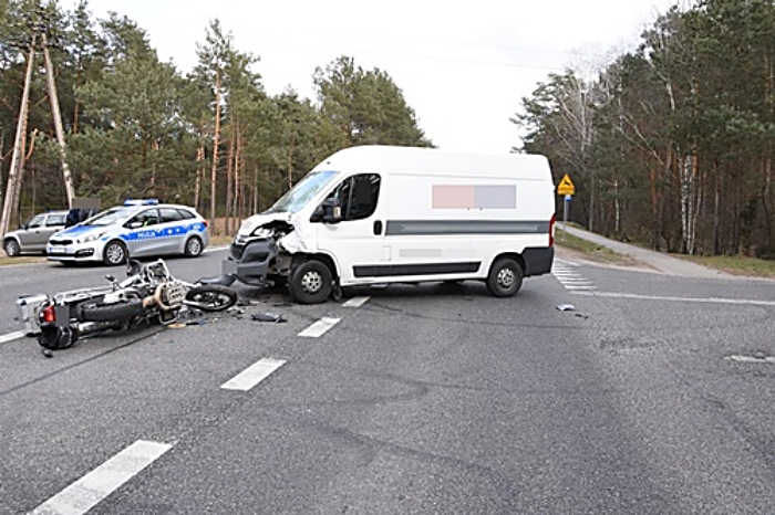 Wypadek zdarzył się w sobotę po południu na drodze z Wyszkowa do Serocka w Popowie-Letnisku. Jak wynika ze wstępnych informacji, które uzyskali policjanci, kierowca citroena wyjeżdżając z drogi podporządkowanej nie ustąpił pierwszeństwa przejazdu kierującemu motocyklem BMW, co doprowadziło do zderzenia pojazdów. Motocyklista z obrażeniami ciała został przetransportowany do szpitala.