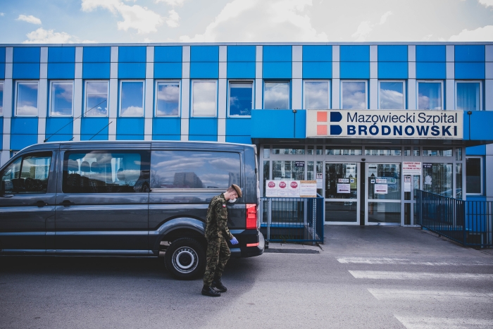 Żołnierzy 5 Mazowieckiej Brygady Obrony terytorialnej można spotkać przed szpitalami, jako wzmocnienie ochrony i monitorowanie dostępu do tych placówek. Zajmują się także selekcją osób wchodzących na teren szpitala (triaż) i kierowaniem na oddziały. Żołnierze wspierają personel m.in. w Szpitalu w Płońsku, Ciechanowie, Sokołowie Podlaskim, Wyszkowie, Wołominie, trzech szpitalach warszawskich oraz w DPS w Brańszczyku. Skierowani zostali tam do służby żołnierze mieszkający w danym rejonie, służą w systemie zmianowym.
