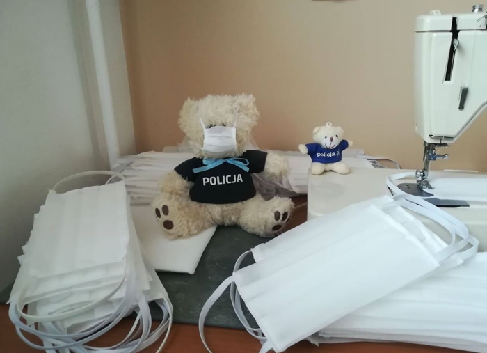 Materiały do szycia maseczek komendzie dostarcza Starostwo Powiatowe w Wyszkowie.