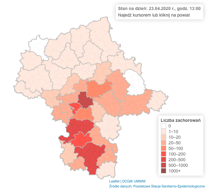 - Codziennie przybywa po kilkaset osób zakażonych. Mazowsze jest niestety tym regionem, w którym zdiagnozowano największą liczbę zarażeń. Aby mieszkańcy Mazowsza mieli dostęp do informacji o rozprzestrzenianiu się koronawirusa w ich powiatach, stworzyliśmy interaktywną mapę rozprzestrzeniania się wirusa w naszym regionie. Od teraz, w łatwy sposób każdy może sprawdzić liczbę zakażeń, zgonów i wyzdrowień wchodząc na stronę - podkreśla rzecznik prasowy Urzędu Marszałkowskiego Województwa Mazowieckiego.