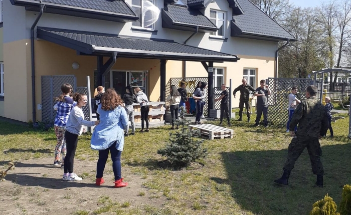 Od ponad tygodnia terytorialsów z 52 batalionu z Komorowa można także spotkać w domu dziecka w Wyszkowie. Oprócz mierzenia temperatury podopiecznym i personelowi, terytorialsi prowadzą codziennie poranną gimnastykę z młodzieżą, organizują czas wolny, pomagają przy lekcjach, a także pilnują przestrzegania zasad reżimu sanitarnego.