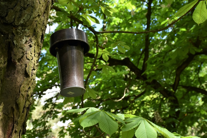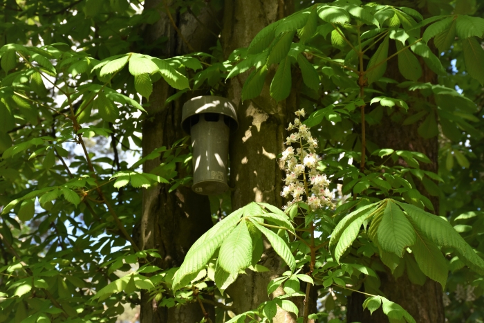 Od lat kilkunastu wieszane są te pułapki kominowe na kasztanowcach w Rybienku Leśnym.Skuteczność tych pułapek w zwalczaniu szkodnika jest żadna- widać to gołym okiem.Pułapki nawet te feromonowe wyłapują tylko samice i to nie wszystkie.Drzewa są w fatalnym stanie i czeka ich niebawem wycinka . Parę lat temu zresztą wycięto już parę sztuk. Według badań naukowców z Uniwersytetu Przyrodniczego w Poznaniu Katedra Metod Ochrony Roślin jedynie pułapki typu delta są w miarę skuteczne, natomiast kominowe są kompletnie nieprzydatne. Właśnie kominowe z uporem maniaka są wieszane w Rybienku Leśnym. Najskuteczniejszą metodą walki ze szkodnikiem jest opaska lepowa szerokości około 50 cm. Służy ona min. do odłowu samców jak i samic szrotówka kasztanowcowiaczka odbywających rójkę na pniu zaatakowanego drzewa.Wiesza się je już w marcu. Efektywność opaski można zwiększyć umieszczając na niej dyspenser feromonowy.Tę metodę od ponad dwudziestu lat stosuje się w Markach zarówno w parkach , czy wzdłuż dróg.Efekty są znakomite i koszty bardzo niewielkie.Jedna opaska kosztuje około 12 PLN , natomiast pułapka to koszt 40PLN.Kiedyś zaproponowałem starostwu , że kupię za własne pieniądze te opaski lepowe i sam je zawieszę- - niestety nie byli zainteresowani.Widać ktoś nieżle zarabia na wieszaniu tych pułapek. Tylko drzew jest żal bo, żadne pułapki ich nie uratują.Ale do urzędników to nie dociera.