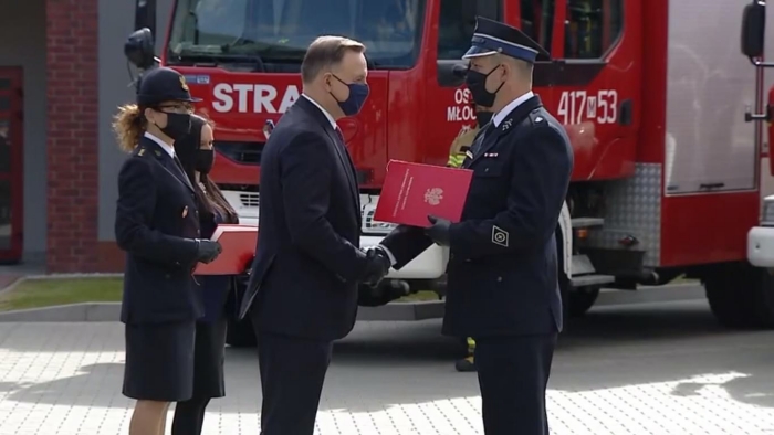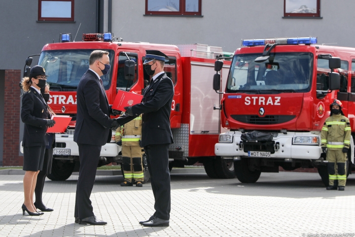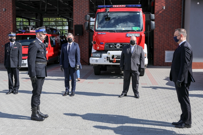 – Zawsze mówię z wdzięcznością o strażakach ochotnikach. Poświęcają swój czas na ratowanie życia, zdrowia i mienia swoich sąsiadów i innych ludzi, którzy znajdą się w niebezpieczeństwie. Nie jest to ich praca, to służba oddania się ojczyźnie i drugiemu człowiekowi. Moją ambicją jest, by tacy ludzie byli jak najlepiej wyposażeni i mogli służyć jak najsprawniej – podkreślił Andrzej Duda. - Bardzo często słyszę od ludzi, gdy jestem na miejscu, gdzie zdarza się jakaś klęska żywiołowa – jak właśnie pożar czy powódź – że „pierwsi byli nasi strażacy”. „Nasi strażacy” to właśnie ochotnicy. „Nasi strażacy” to nasi sąsiedzi. Ludzie z dumą mówią o druhach: nasi strażacy. Bardzo dziękuję za tę służbę. Ona ma niezwykłe znaczenie – ma wielkie znaczenie społecznotwórcze i państwowotwórcze, ma także wielkie znaczenie dla budowy w kraju postaw patriotycznych i dla budowy systemu bezpieczeństwa kraju.