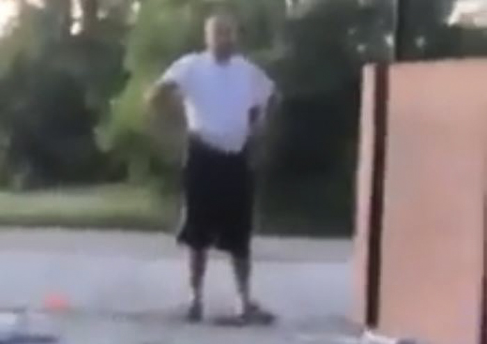 To fragment tego dialogu. Mężczyzna grozi spaleniem nieruchomości. Przy próbie sfilmowania numerów rejestracyjnych jego samochodu, goni kobietę i inną towarzyszącą jej osobę.