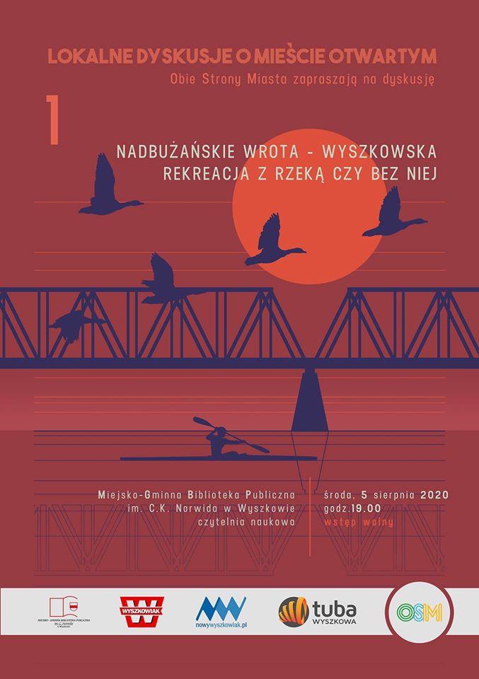 (Zam: 16.07.2020 r., godz. 12.50)Jak informuje organizator - Obie Strony Miasta "Pierwsze spotkanie z Cyklu Lokalne Dyskusje o Mieście Otwartym poświęcone będzie wyszkowskiej rekreacji oraz roli, jaką pełni w niej nasza rzeka. Zaproszeni dyskutanci będą reprezentować obydwa samorządy oraz jednostki bezpośrednio odpowiedzialne za rekreacje jak również podmioty społeczne (...). W trzeciej części spotkania każdy z przybyłych będzie mógł zadać pytanie naszym dyskutantom, spotkanie będzie też transmitowane na naszym fp, więc istnieje również możliwość zadawania pytań w komentarzach przez internautów.".