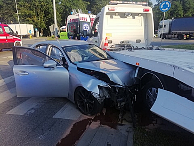 (Zam: 20.07.2020 r., godz. 07.32)W sobotę około godziny 18.30 policjanci ruchu drogowego będący na ul. Wąskiej otrzymali informację od świadków, że samochód uderzył w znak drogowy na wysepce rozdzielającej pasy ruchu na ul. Kościuszki, po czym odjechał w kierunku kościoła parafii św. Wojciecha. Gdy mundurowi pojechali w to miejsce zauważyli na rondzie im. ks. Szulca uszkodzonego srebrnego lexusa, który nagle przyśpiesza, wjeżdża na wysepkę rozdzielającą pasy ruchu na ul. Sowińskiego i z impetem uderza w znajdującą się po przeciwnej stronie lawetę.