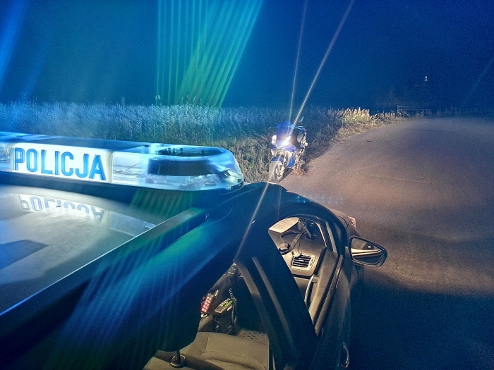 Tuż przed północą z soboty na niedzielę w pościg za motocyklistą ruszyli policjanci z Posterunku Policji w Długosiodle. W trackie nocnego patrolu ulic Długosiodła na ul. Pułaskiego mundurowi zauważyli motocykl, którego kierujący nie korzystał z kasku ochronnego, a pojazd nie miał oświetlenia i tablicy rejestracyjnej. Za pomocą sygnałów dźwiękowych i świetlnych funkcjonariusze dali mężczyźnie wyraźny sygnał do zatrzymania pojazdu. Motocyklista nie reagował na wydawane polecenia. Zaczął przyśpieszać i podjął próbę ucieczki. Policjanci ruszyli w pościg. Uciekając mieszkaniec gminy Długosiodło, na łuku drogi stracił panowanie nad jednośladem i wywrócił pojazd. Następnie postanowił kontynuować ucieczkę pieszo. Funkcjonariusze dogonili i zatrzymali 33-latka. Alkomat wykazał w organizmie mężczyzny 2 promile alkoholu. Jak się również okazało mężczyzna nie ma uprawnień do kierowania, a pojazd nie był dopuszczony do ruchu.