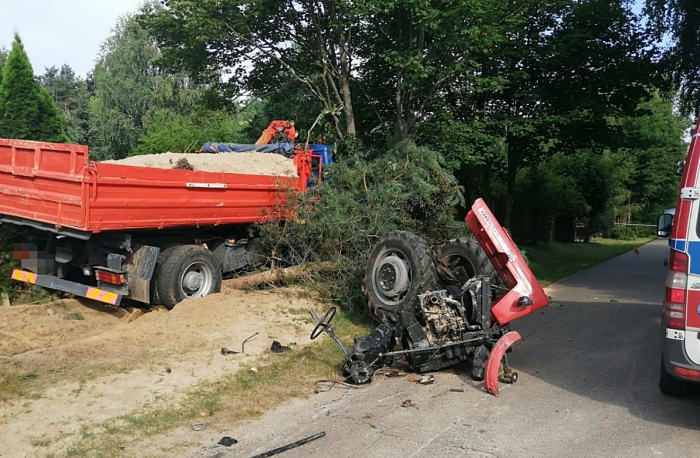 (Zam: 29.07.2020 r., godz. 08.48)Pracujący na miejscu policjanci ruchu drogowego wstępnie ustali, że 61-letni mieszkaniec Bielina kierując ciągnikiem rolniczym doprowadził do zderzenia z ciężarówką. Kierujący samochodem ciężarowym usiłując uniknąć zderzenia uderzył w ogrodzenie jednej z posesji. Przeprowadzone badanie alkomatem wykazało w organizmie traktorzysty 2 promile alkoholu. Mężczyzna kierował ciągnikiem mimo orzeczonego przez sąd zakazu prowadzenia pojazdów mechanicznych. 61-latek został przetransportowany do szpitala, który jeszcze tego samego dnia opuścił. Mężczyzna ponownie odpowie przed sądem za kierowanie „na podwójnym gazie”. Za zlekceważenie poprzedniego wyroku sądu grozi mu nawet 5 lat więzienia. Musi się również liczyć z dotkliwą karą finansową i dalszym zakazem prowadzenia pojazdów mechanicznych.