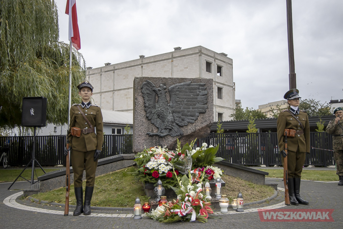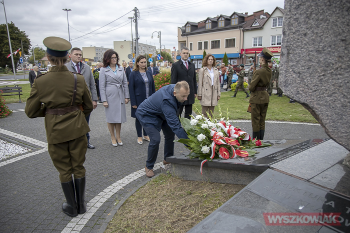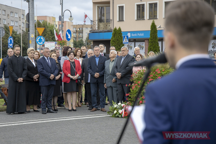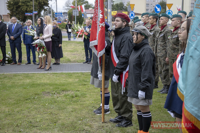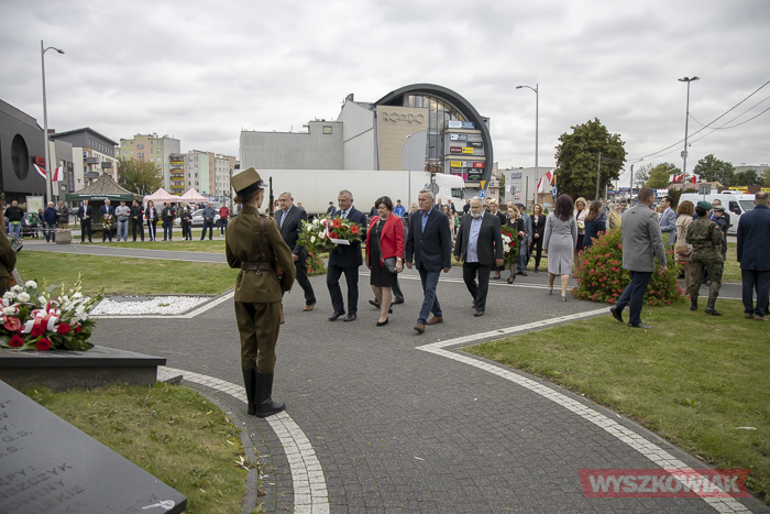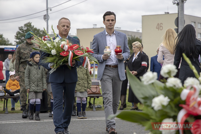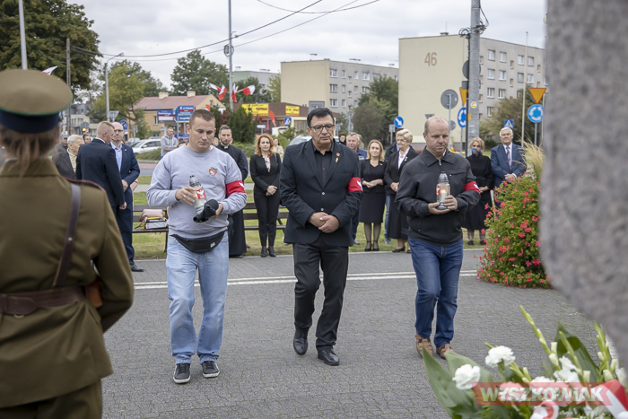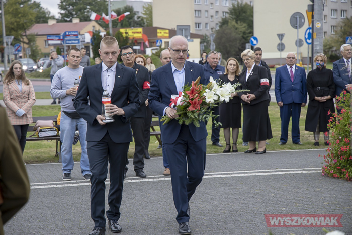 (Zam: 02.09.2020 r., godz. 10.25)Uroczystość zorganizował Urząd Miejski. Harcerze, przedstawiciele samorządów, ugrupowań politycznych, organizacji społecznych, mieszkańcy, uczniowie Centrum Edukacji Zawodowej i Ustawicznej „Kopernik” zebrali się w centrum miasta. Spotkanie rozpoczęło się od odśpiewania hymnu i wysłuchania historycznego komunikatu o rozpoczęciu wojny. Głos zabrał radny, pracownik działu regionalnego miejskiej biblioteki Mirosław Powierza.