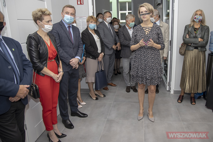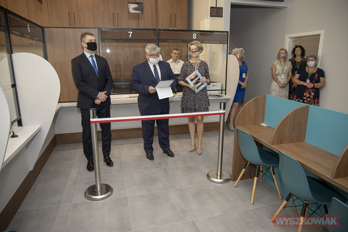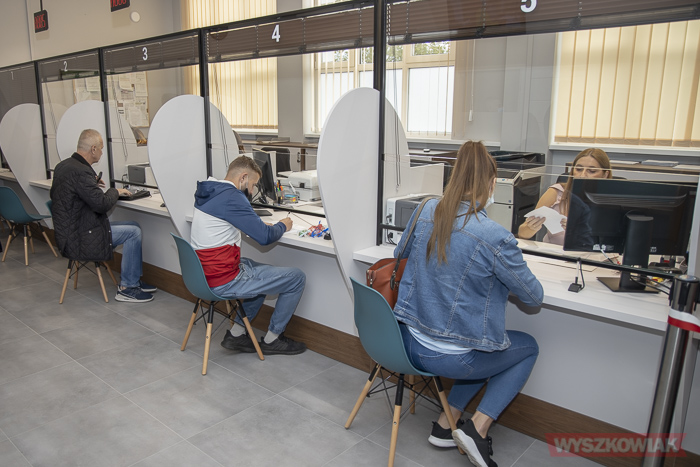 (Zam: 09.09.2020 r., godz. 11.30)Tego dnia o godz. 8.00 odbyło się oficjalne otwarcie biura, które mieści się przy ul. Świętojańskiej 82a (wjazd od ul. Dworcowej, obok stacji kontroli pojazdów). Starostwo Powiatowe zaadoptowało na potrzeby wydziału budynek szkoły. Wydało na ten cel 1,8 mln zł (w tym prace budowlane i remontowe 1,174 mln zł, umeblowanie 333 tys. zł, zagospodarowanie terenu ok. 300 tys. zł). Wydział komunikacji jest największym z funkcjonujących w starostwie - pracuje w nim 18 osób i dwoje stażystów. Zyskali dobre warunki pracy i obsługi mieszkańców oraz przestronne pomieszczenia archiwum. Nowy wydział to 300 m kw., w tym sala obsługi interesantów wyposażona w system kolejkowy. Przed budynkiem powstał parking na 36 pojazdów.