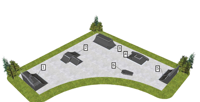 W ramach pierwszego etapu modernizacji skateparku na terenie Szkoły Podstawowej nr 5 zamontowane zostaną 3 urządzenia: roll-in z quarter pipe, jumpbox + spin, quarter pipe + quarter pipe 90st piramida.