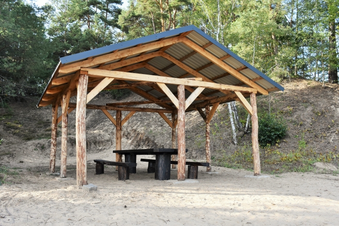 Fajne miejsce schadzek. Były już takie przy trasach. Często wykorzystywane a teraz częściowo zapomniane. Proponuję konkurs na nazwę i stawiam na ,,Schadzkownię”. Kto to wybudował I do czego? Miał jakieś pozwolenie? Z drugiej strony to wstyd ,że nikogo nie stać na lepszy pomysł. No ale patrząc na poziom w jakim się obracamy, dopóki nie zmienimy podejścia to będziemy w gminie tak mieli. Podpowiadam, że można jeszcze kopać nory w wydmach. To też fajne.