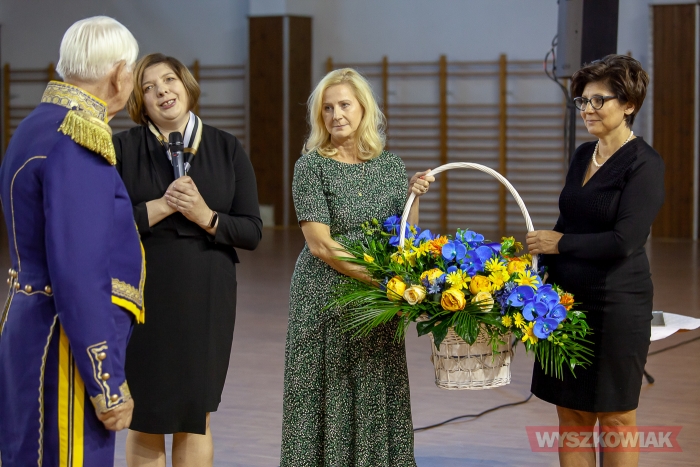 Burmistrz Grzegorz Nowosielski wraz z przewodniczącą Rady Miejskiej Elżbietą Piórkowską i naczelnik wydziału promocji Urzędu Miejskiego Edytą Wittich dziękowali za wzbogacanie artystycznego życia gminy Wyszków, pracę pedagogiczną, kształtowanie postaw patriotycznych i obywatelskich, promowanie gminy w kraju i za granicą.