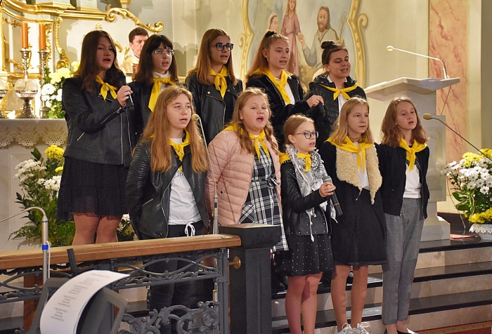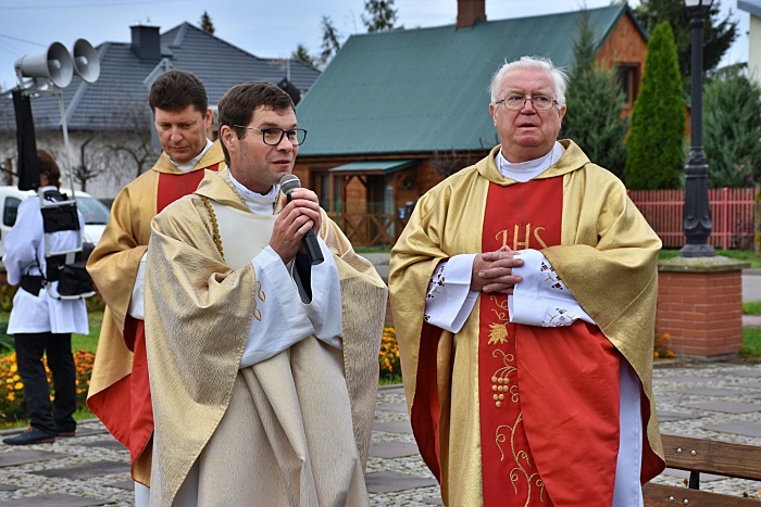 (Zam: 13.10.2020 r., godz. 12.50)Uroczystą mszę świętą odprawił proboszcz ks. Jerzy Brzeziński wspólnie z ks. Pawłem Stacheckim i wikariuszem ks. Robertem Ratomskim. Na uroczystych obchodach powiat wyszkowski reprezentował starosta Jerzy Żukowski wraz z radnymi Iwoną Wyszyńską i Renatą Rębałą. O oprawę mszy świętej zadbali uczniowie Szkoły Podstawowej im. Jana Pawła II w Nowych Budach. Mali artyści wraz z opiekunami zabrali zgromadzonych w nostalgiczną podróż po dzieciństwie i życiu św. Jana Pawła II, jego pontyfikacie, twórczości i pozostawionym dziedzictwie.