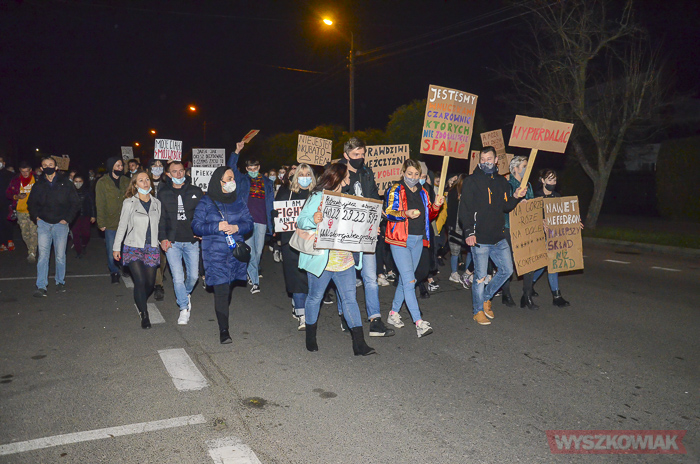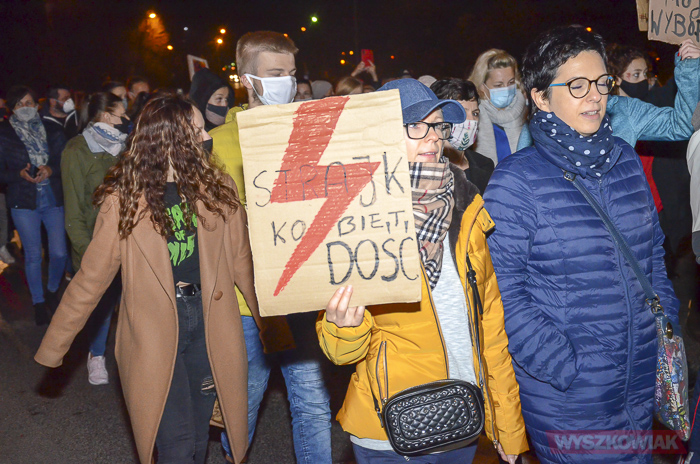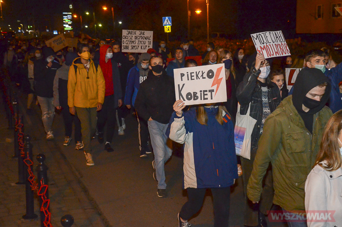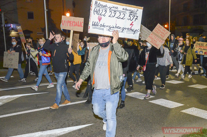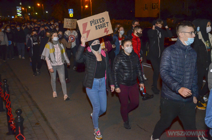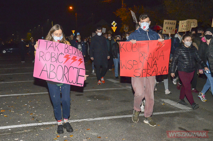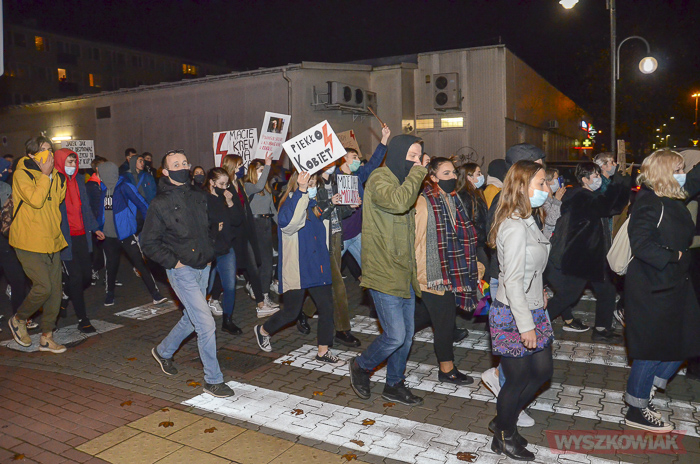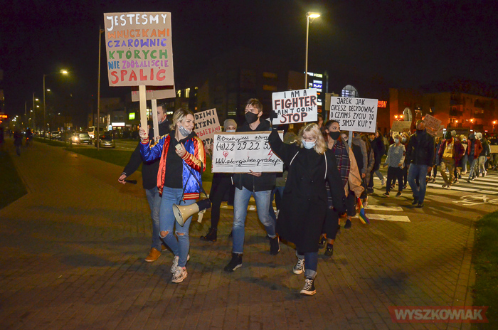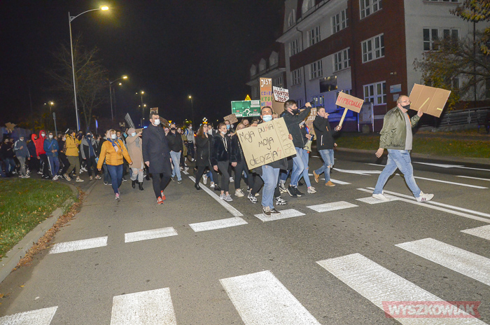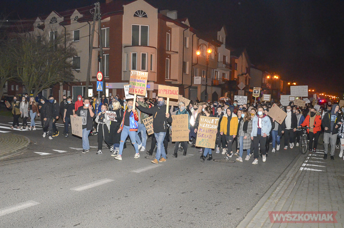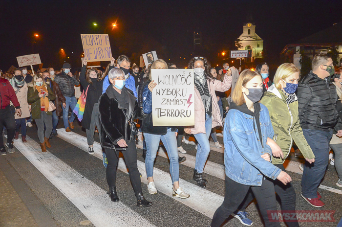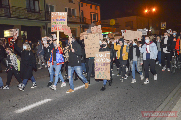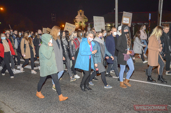 Po drodze spotkali się z licznymi wyrazami sympatii ze strony przechodniów. Mieszkańcy wyglądali z okien, wychodzili na balkony, by solidaryzować się z uczestnikami marszu. Tak jak w niedzielę, w spacerze ulicami Wyszkowa brali udział głównie młodzi ludzie. Krzyczeli m.in. „Je..ć PiS”, „Rewolucja jest kobietą”, „Myślę, czuję, decyduję”, „To jest wojna”, „Kto nie skacze, ten za PiS-em”, „Bosak zamknij mordę”.
