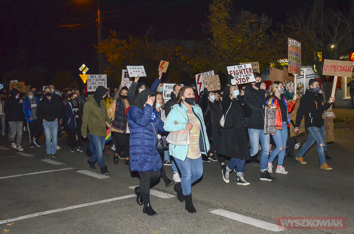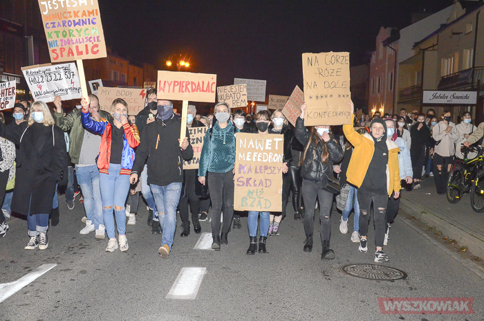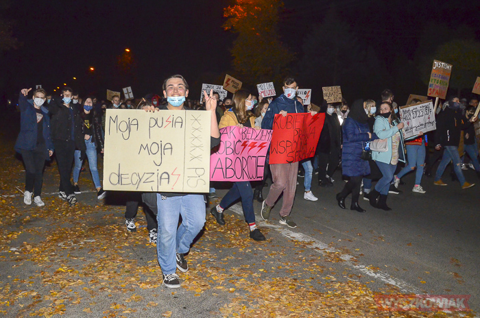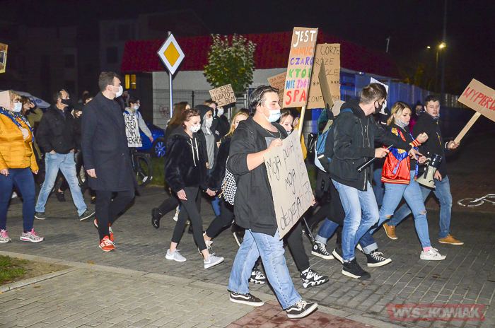 (Zam: 28.10.2020 r., godz. 21.30)W środę 28 października o godz. 19.00 z placu Miejskiego wyruszyli uczestnicy marszu, którzy, tak jak w niedzielę, trzymając tablice i wykrzykując hasła dali wyraz swojemu oburzeniu na decyzję Trybunału Konstytucyjnego. Hasła dotyczyły nie tylko obrony praw kobiet, ale także wyrażały sprzeciw wobec Prawa i Sprawiedliwości i przedstawicieli innych ugrupowań, którzy są przeciwnikami aborcji.
