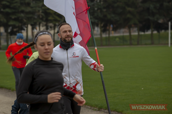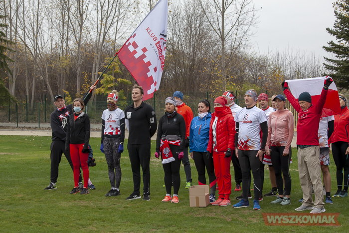 (Zam: 11.11.2020 r., godz. 12.42)Biegacze co roku z okazji rocznicy odzyskania niepodległości uczestniczyli w imprezach sportowych odbywających się lokalnie i w większej skali. „Co roku świętowaliśmy rocznicę odzyskania przez Polskę niepodległości w najlepszy dla nas możliwy sposób, uczestnicząc w licznych tego dnia biegach, w tym największym w Warszawie.Dla większości z nas to był ostatni bieg przed roztrenowaniem, kulminacja sezonu, ostatnia szansa na życiówkę (aktualnie 35 klubowych życiówek na 10km jest właśnie z Biegu Niepodległości w Warszawie). Niestety nie w tym roku... Dlatego zapraszamy na wspólny trening 11 listopada na Stadion Miejski. Razem w biegu uczcimy Święto Niepodległości.Do przebiegnięcia od jednego kółka do 11,11km, tyle ile chcesz i ile możesz przebiec” - tak w mediach społecznościowych Klub Biegacza zapraszał na wspólny trening. Po zaśpiewaniu hymnu z klubową flagą stanęli na starcie. Przed biegiem wspólny trening poprowadził Marek Stokarski.