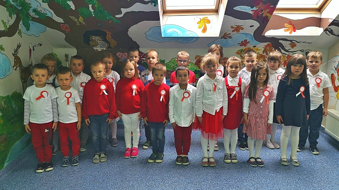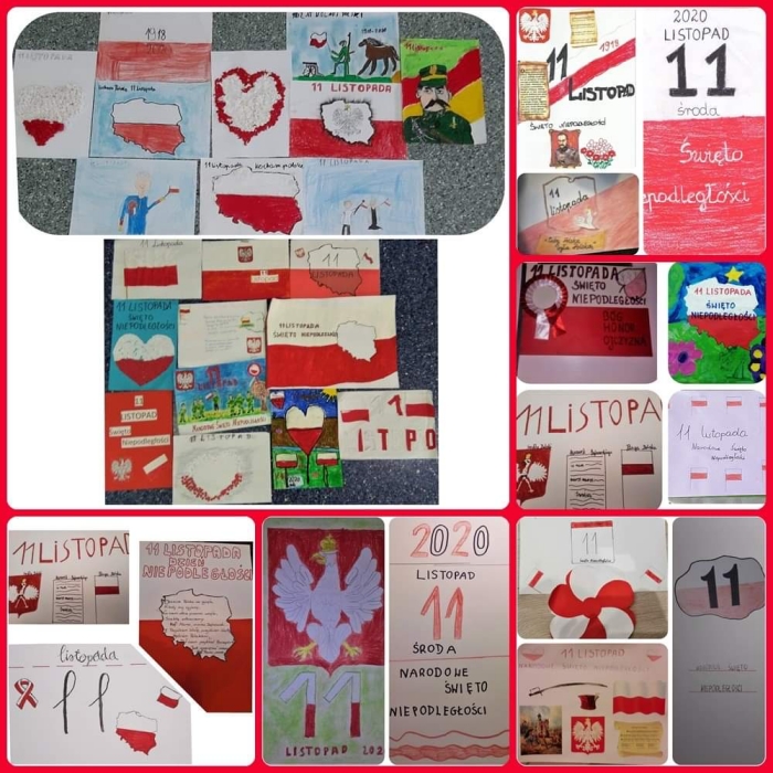 (Zam: 16.11.2020 r., godz. 10.35)10 listopada przyłączyła się do akcji „Szkoła do hymnu”- przedszkolaki stacjonarnie, a klasy I-VIII online. Uczniowie i nauczyciele o godzinie 11.11 odśpiewali cztery zwrotki „Mazurka Dąbrowskiego”. Przy tej okazji pamiętali o strojach galowych, zachowaniu właściwej postawy i przypięciu kokard narodowych, do przygotowania których zachęcał Samorząd Uczniowski. Organizacja ta przeprowadziła też akcję „Kartka z kalendarza – 11 listopada”. Uczniowie wykonywali prace plastyczne i przysyłali przedstawiające je zdjęcia do opiekunek samorządu. Wykonano z nich kolaż. 10 listopada w czasie lekcji, szczególnie historii czy zajęć z wychowawcą, nauczyciele rozmawiali też na temat doniosłości Święta Niepodległości oraz śpiewali z dziećmi pieśni patriotyczne. Na stronie internetowej szkoły w zakładce „Dobre praktyki - propagowanie postaw patriotycznych” zamieszczone zostało kalendarium przedstawiające wydarzenia zawiązane z odzyskaniem przez Polskę niepodległości. 11 listopada trzy uczennice wzięły też udział w II Konkursie Polskiej Pieśni i Piosenki Patriotycznej, zorganizowanym przez Fundację Wielka Polska. W ten sposób społeczność szkoły pokazała, że potrafi się zjednoczyć, nawet w trudnych warunkach, żeby uczcić ważne święto i dała wyraz swojej postawy patriotycznej. Joanna Kozon