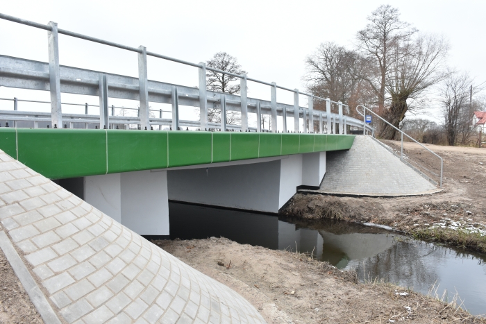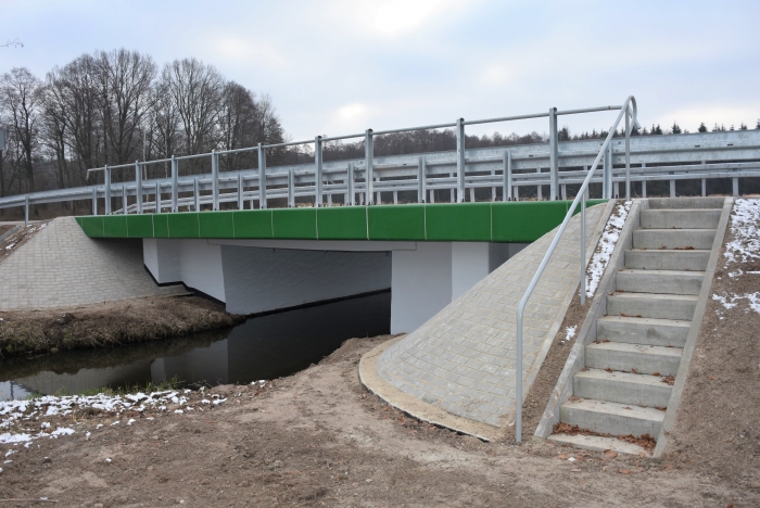 (Zam: 08.12.2020 r., godz. 11.48)W ramach przebudowy dokonano gruntownej modernizacji istniejącego obiektu polegającej przede wszystkim na wzmocnieniu konstrukcji poprzez wykonanie dodatkowej żelbetowej płyty nośnej, współpracującej z istniejącą płytą oraz wykonaniu całkowicie nowych tzw. płyt przejściowych, których istniejący obiekt nie posiadał. Dzięki tym pracom podniesiono nośność mostu do 40 ton. Konstrukcja mostu została także poszerzona, co pozwoliło „zmieścić” na moście nie tylko samą jezdnię, ale też wykonać nieistniejący wcześniej chodnik oraz bariery energochłonne. Prace te znacznie podniosły poziom bezpieczeństwa ruchu zarówno pojazdów jak i pieszych. W ramach przeprowadzonych prac wykonane zostały też inne, całkowicie nowe elementy infrastruktury mostu w tym m.in. umocnienia przyczółków, schody skarpowe, ścieki i bariero-poręcze. Wartość samych robót budowlanych wyniosła 607 016,83 zł. Zadanie zostało zrealizowane przy wsparciu finansowym Ministerstwa Finansów, które przyznało powiatowi wyszkowskiemu 228 958 zł dofinansowania. Pozostałe środki pochodzą z budżetu powiatu wyszkowskiego i gminy Długosiodło.