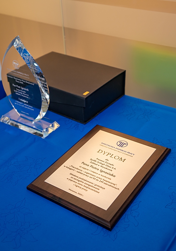 Nagrody laureatowi konkursu regionalnego i centralnego - grawerton oraz statuetkę Mecum Tuttissimus Ibis - wręczyła Jolanta Koszałka – Okręgowy Inspektor Pracy w Warszawie. Spółkę Ardagh Glass SA Zakład w Wyszkowie reprezentował Dyrektor Operacyjny Zakładu w Wyszkowie Jerzy Żołyniak oraz Przewodniczący Organizacji Wydziałowej NSZZ „Solidarność” przy Organizacji Zakładowej nr 877 Ardagh Glass SA Zakład w Wyszkowie Bogdan Osik. Spółka Ardagh Glass SA Zakład w Wyszkowie została również wpisana na prestiżową Złotą Listę Pracodawców.