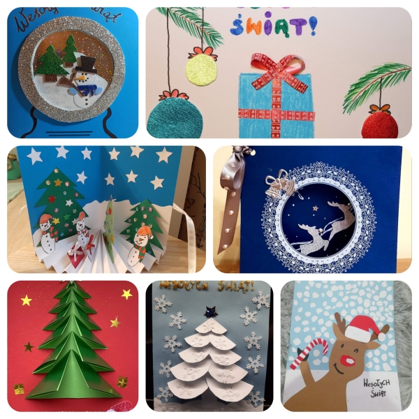 Tego dnia nastąpiło również rozdanie nagród laureatom Szkolnego Konkursu Plastycznego na Najpiękniejszą Kartkę Świąteczną, który zorganizowała pani Aneta Budek. Adresowany był on do dzieci w trzech kategoriach wiekowych. Uczestnicy wykazali się dużym zaangażowaniem oraz kreatywnością i powstały niezwykłe prace. Lista zwycięzców:
