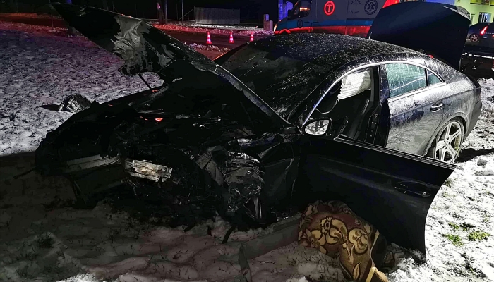 (Zam: 15.01.2021 r., godz. 21.03)Ze wstępnych ustaleń policjantów drogówki wynika, że 26-letni kierowca mercedesa jadąc w stronę Wyszkowa nie dostosował prędkości do warunków panujących na drodze. By nie uderzyć w wysepkę dzielącą pasy ruchu zjechał z drogi do przydrożnego rowu, w którym uderzył w betonowy przepust. Następnie samochód „przeciął” drogę gminną i zatrzymał się na polu po drugiej stronie drogi. W tym czasie panowały trudne warunki drogowe, a jezdnia była oblodzona. Z obrażeniami ciała do szpitala został przewieziony kierowca osobówki.