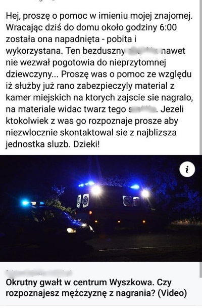 "Okrutny gwałt w centrum Wyszkowa" - uwaga na fałszywe informacje
